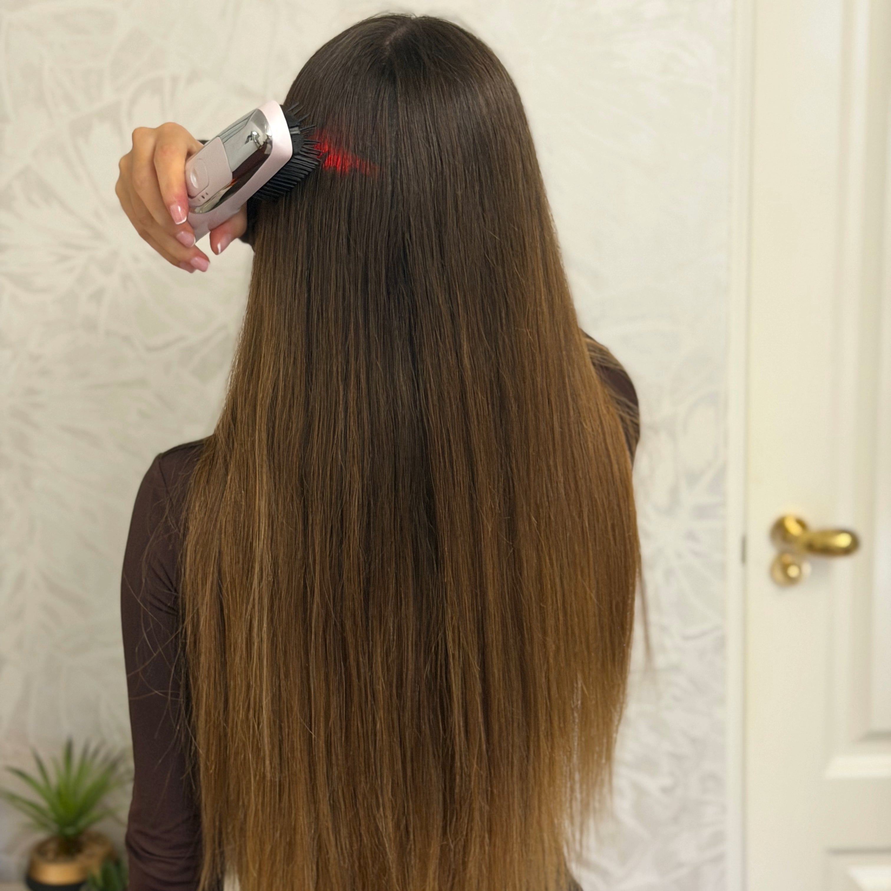 Disfruta de un cabello más denso, brillante y con un aspecto renovado gracias a la combinación de luz infrarroja y vibración.