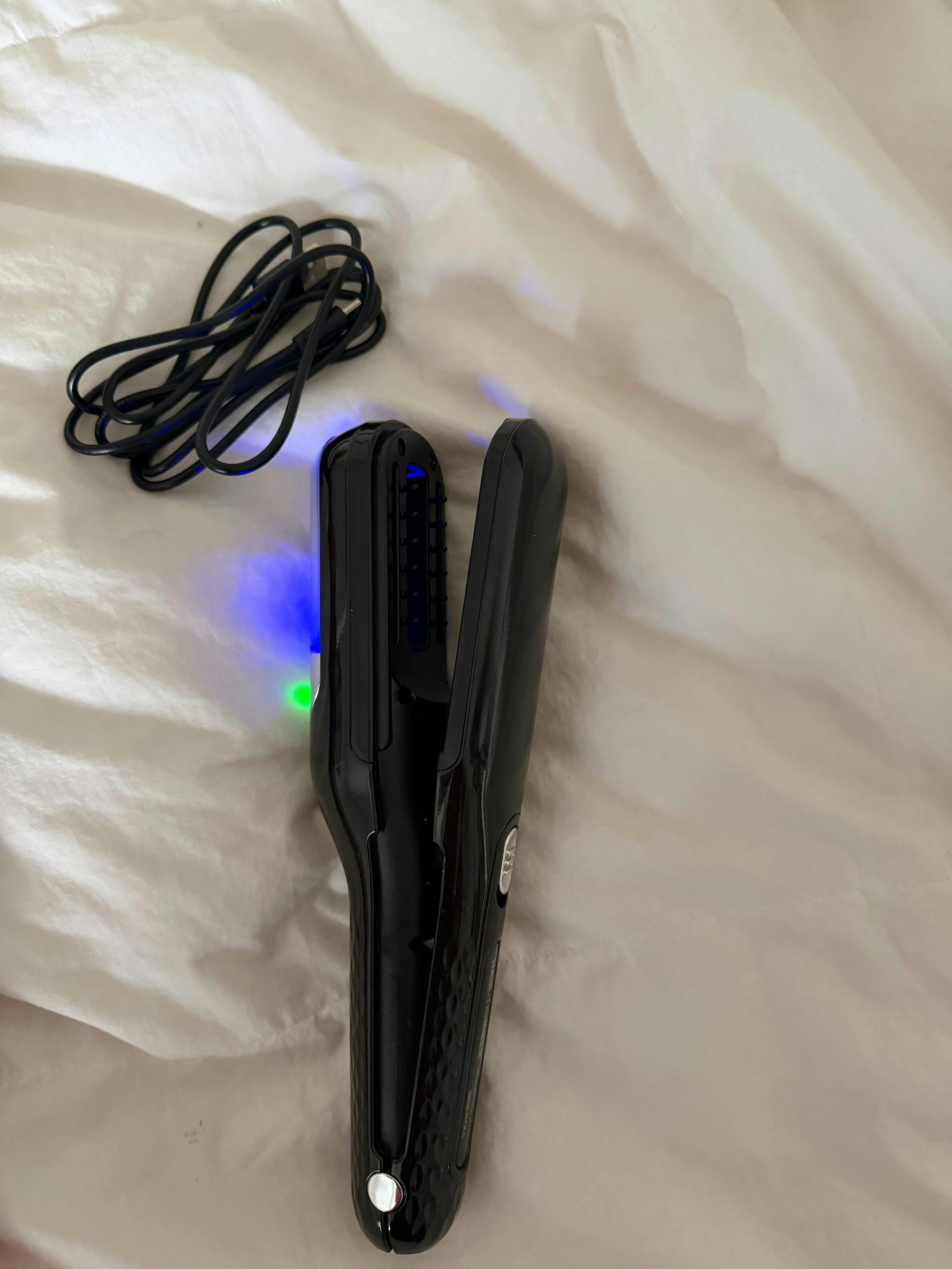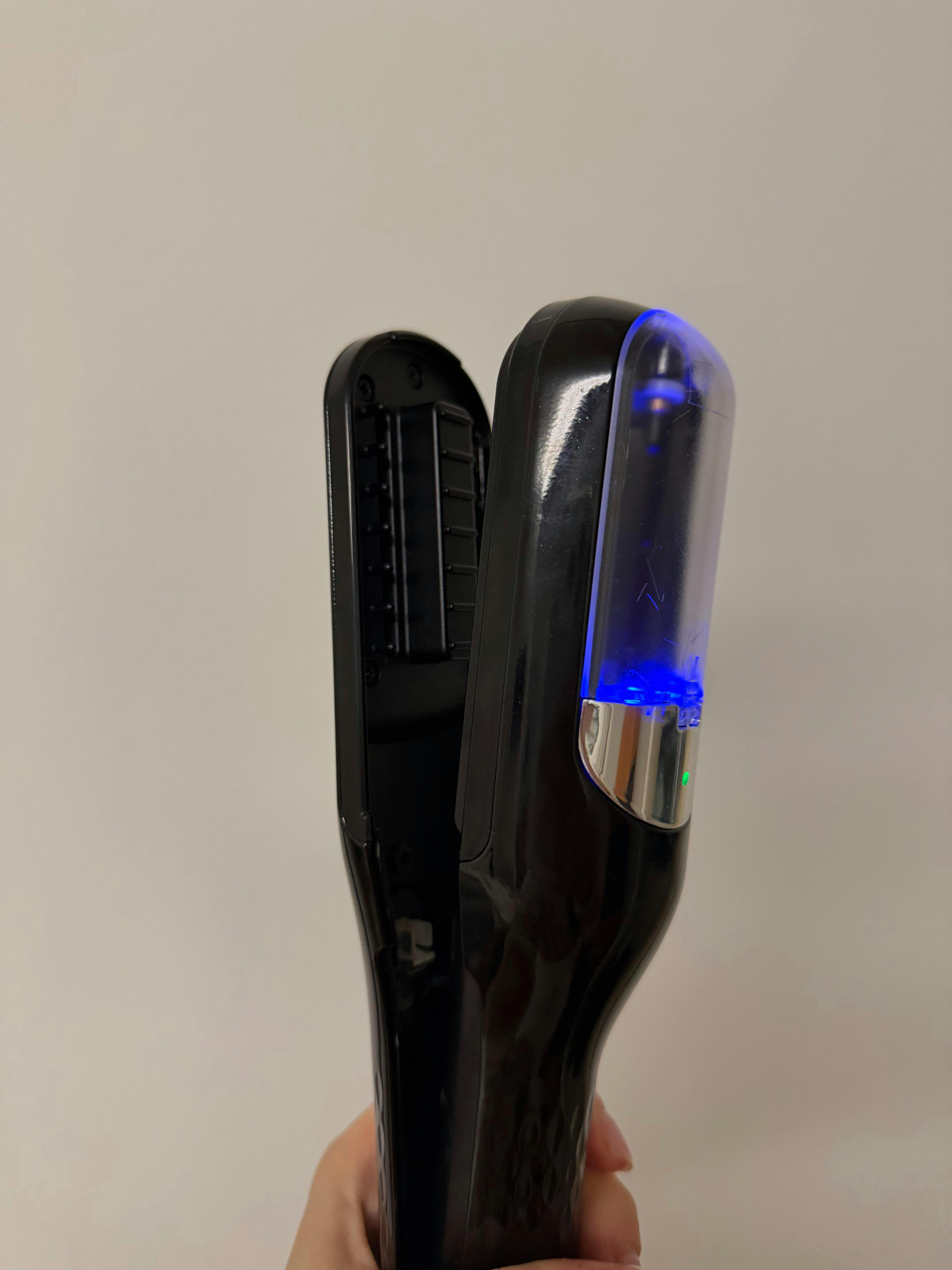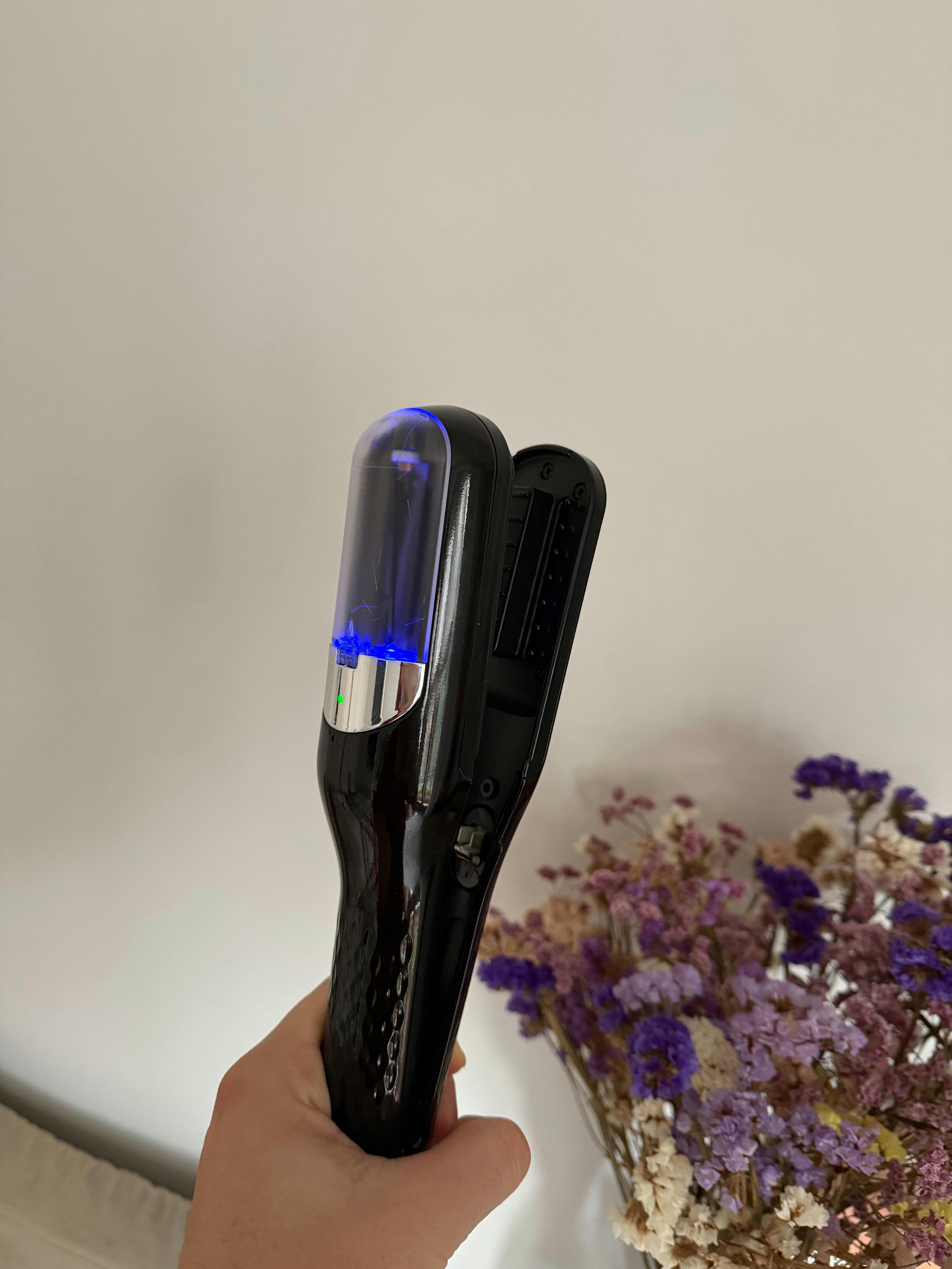 Enciende el aparato y deslízalo suavemente sobre las puntas abiertas o dañadas; la tecnología inteligente cortará solo lo necesario.