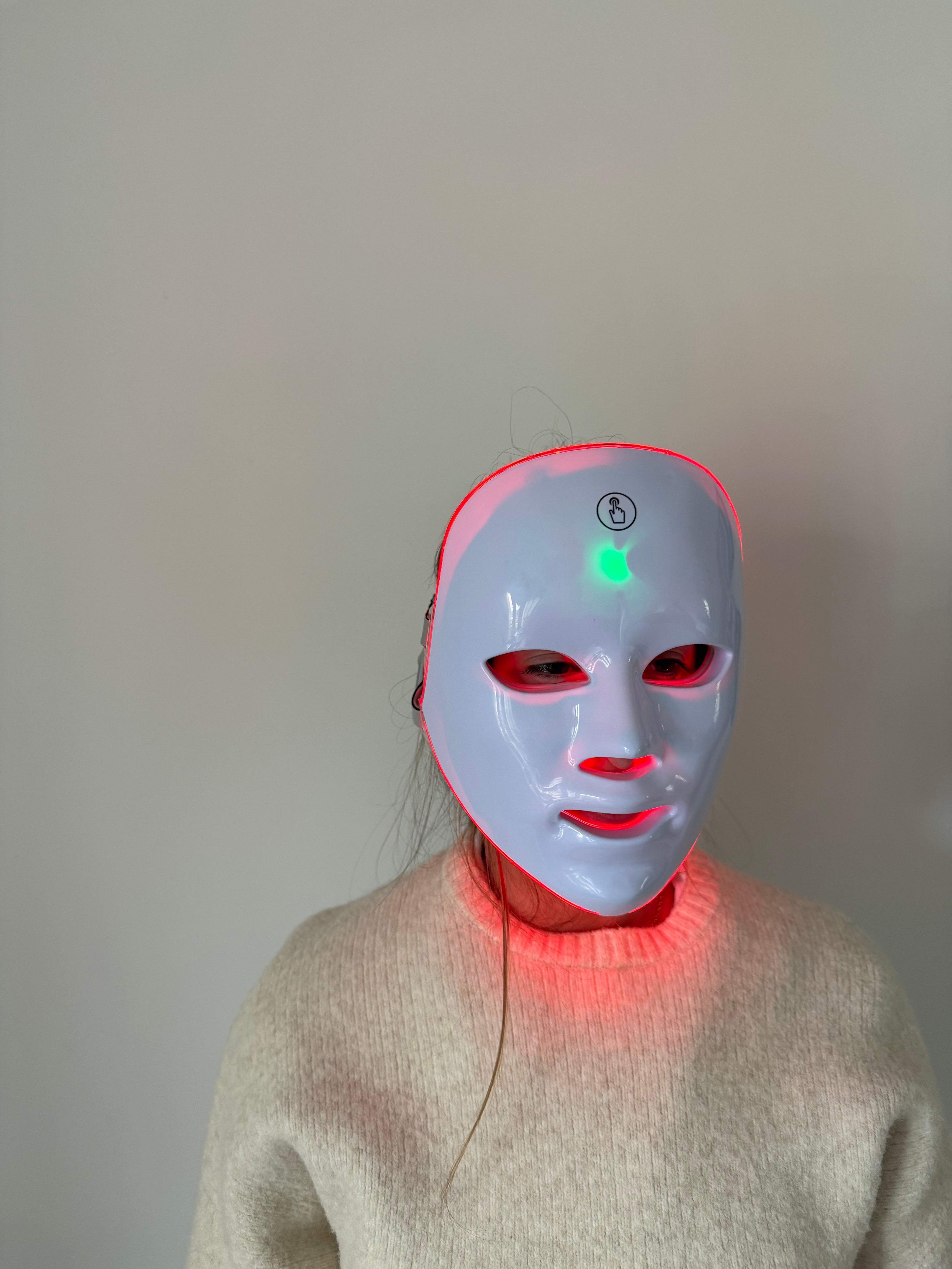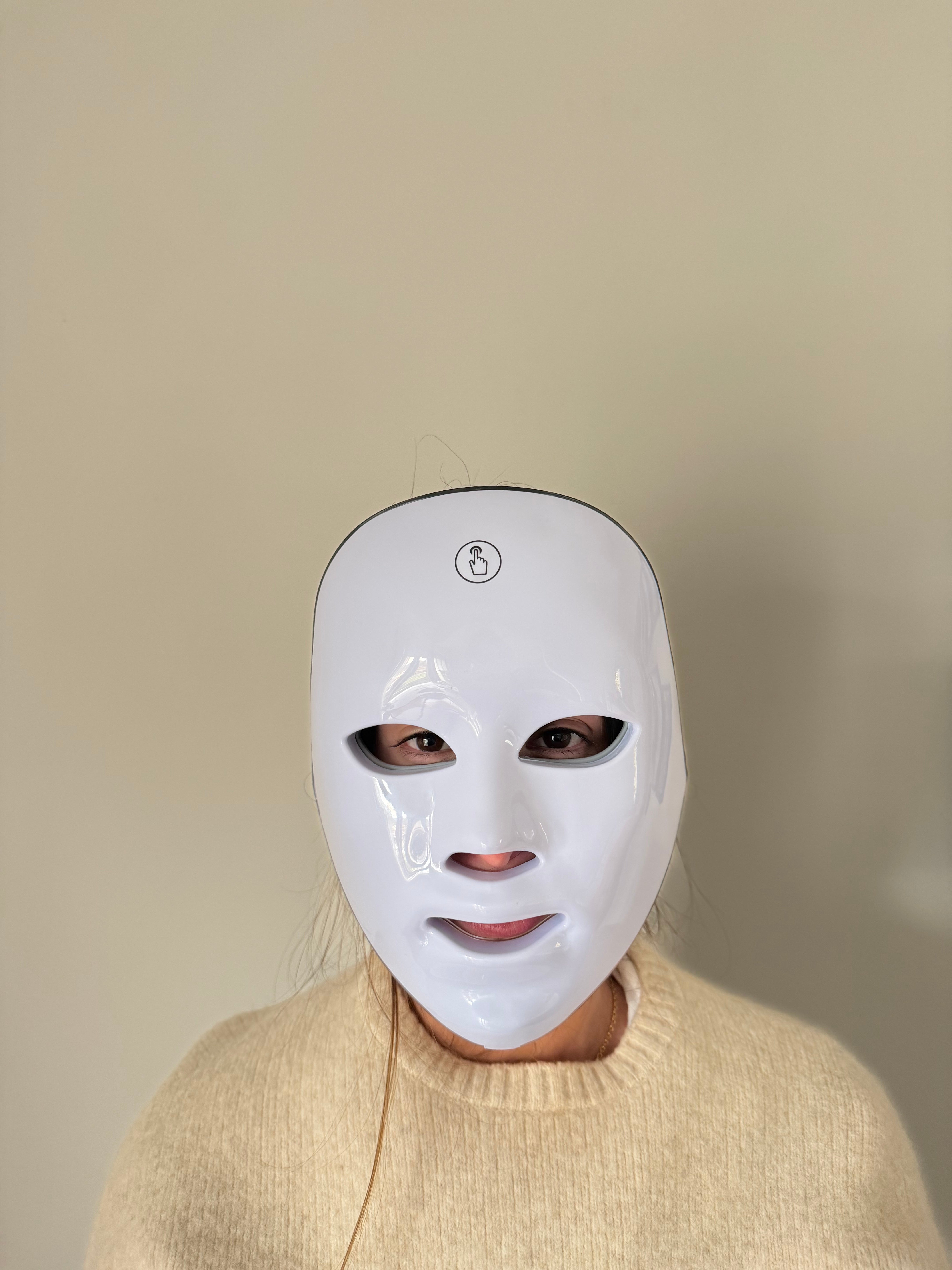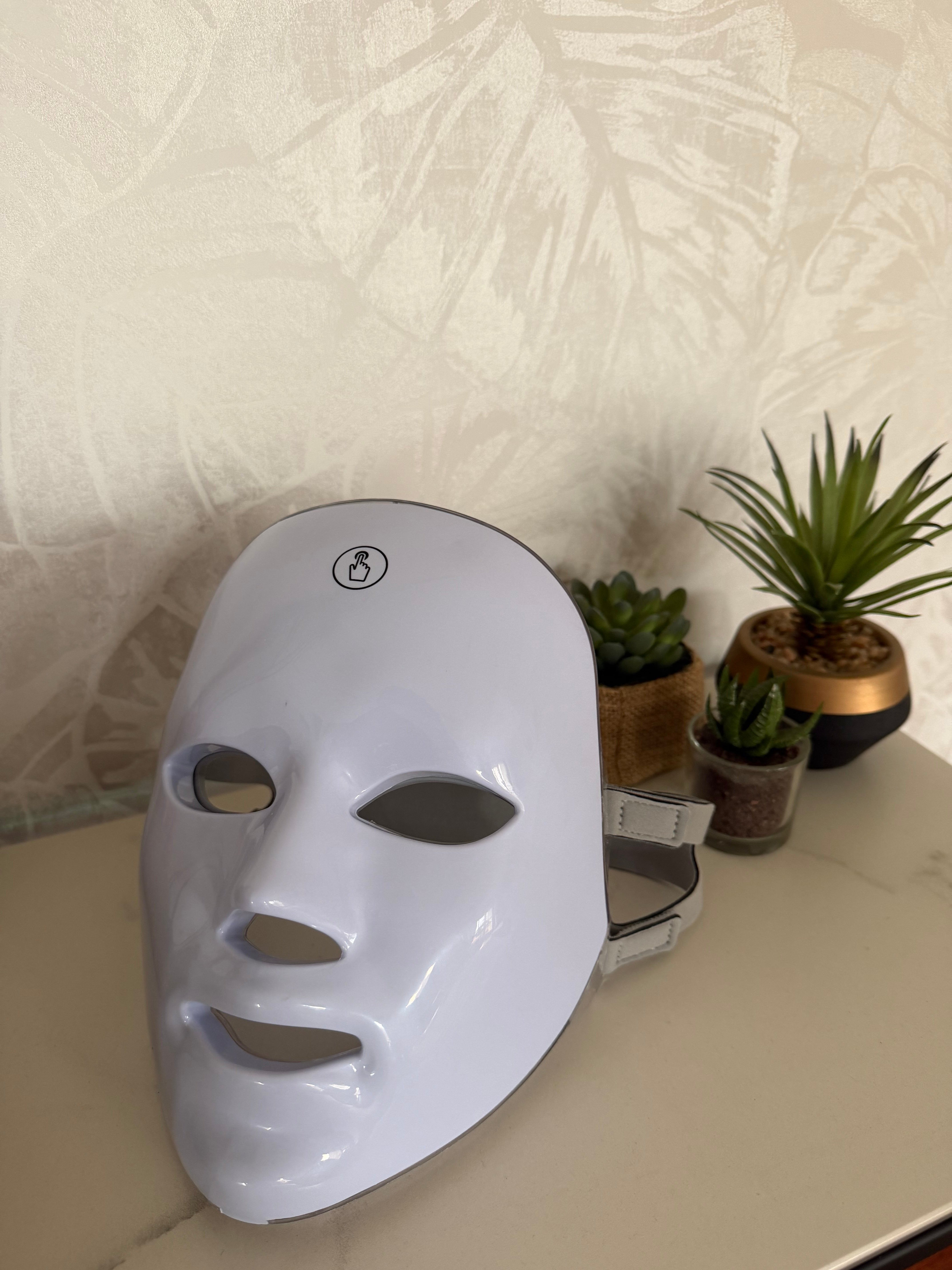 Máscara facial LED con un diseño ligero, cómodo y pensado para adaptarse perfectamente al rostro, ofreciendo una experiencia de uso agradable y sencilla.
