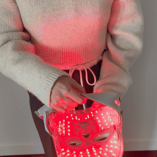 Coloca la máscara facial LED sobre el rostro y ajústala cómodamente para que se adapte correctamente a tu cara.